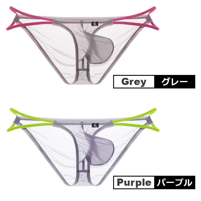 AeeeYeee メンズ ビキニ ダブルストラップ シースルー バイカラー 極薄 セクシー インナー シルク肌触り 配色 2本紐 ローライズ 男性下着 [ae-891sj]