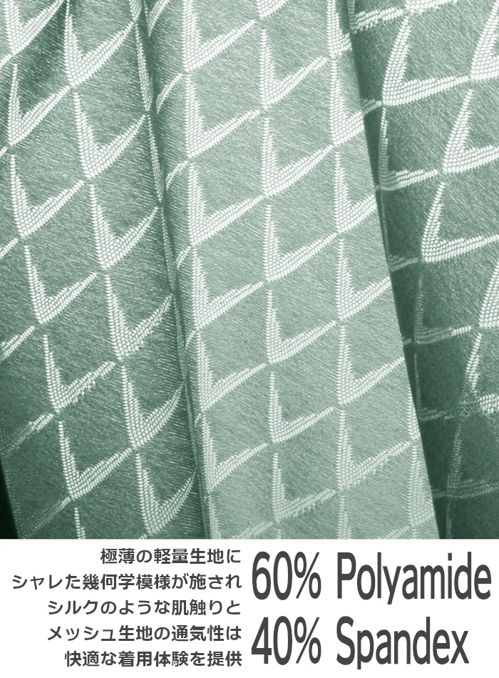 洗練された幾何学模様のシースルー生地が、大人の色気とかっこよさを演出。