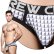 だまし絵のように、目の錯覚を利用してデザインされた遊び心満載の一枚です。シルバーのロゴが施されたウエストバンドがゴージャス感を演出し、大人のユーモアを感じさせるブリーフです。